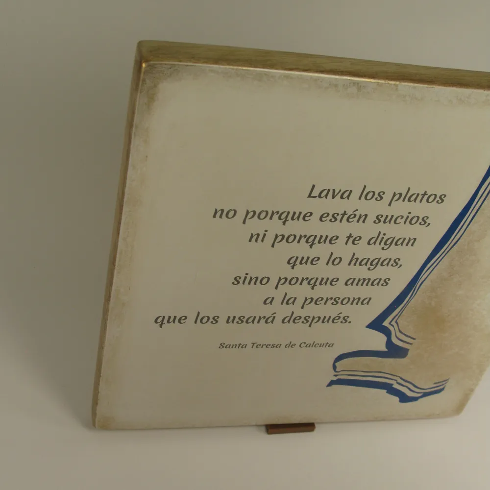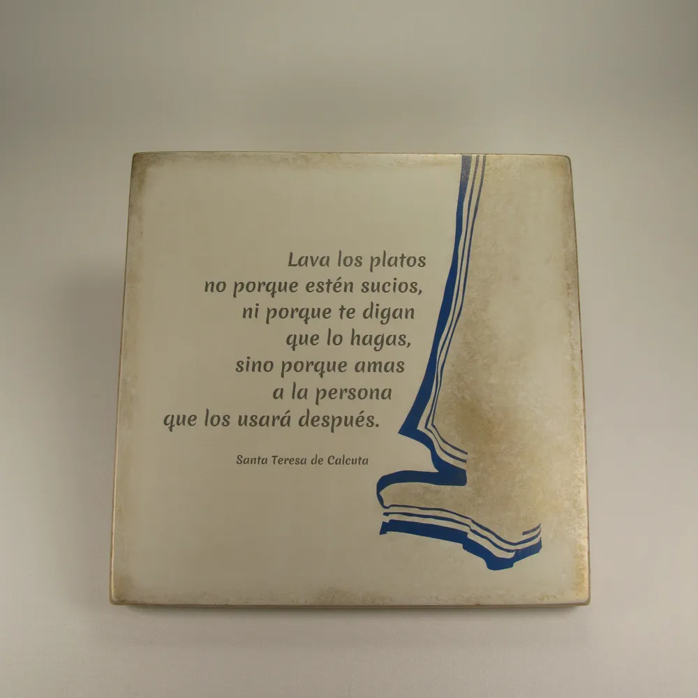 Esta pieza hecha a mano ha sido creada buscando que cada vez que la mires en tu cocina, recuerdes que lavar los platos, preparar una mesa o recoger un espacio no son simples tareas; son actos de amor hacia quien vendrá después.